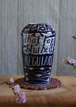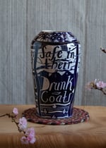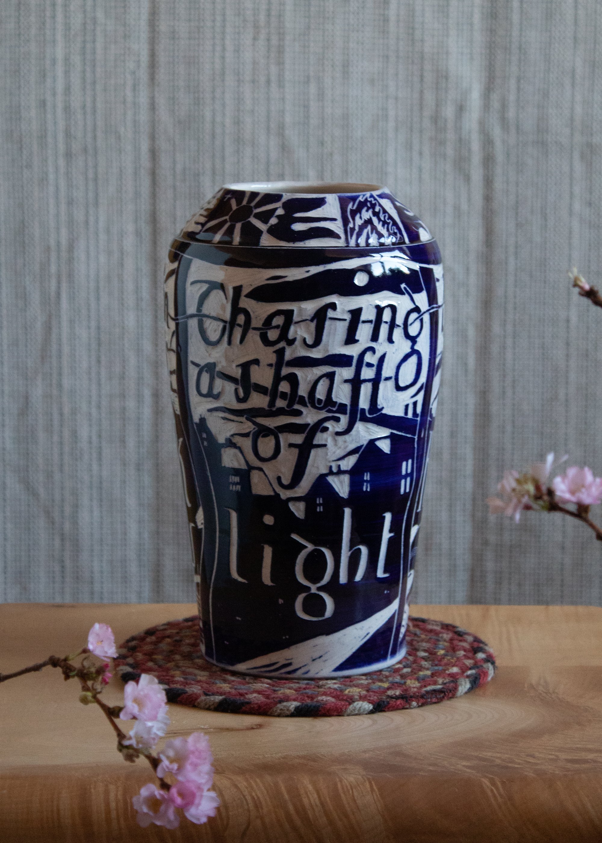 Earthenware Vase, cobalt slip, sgrafitto