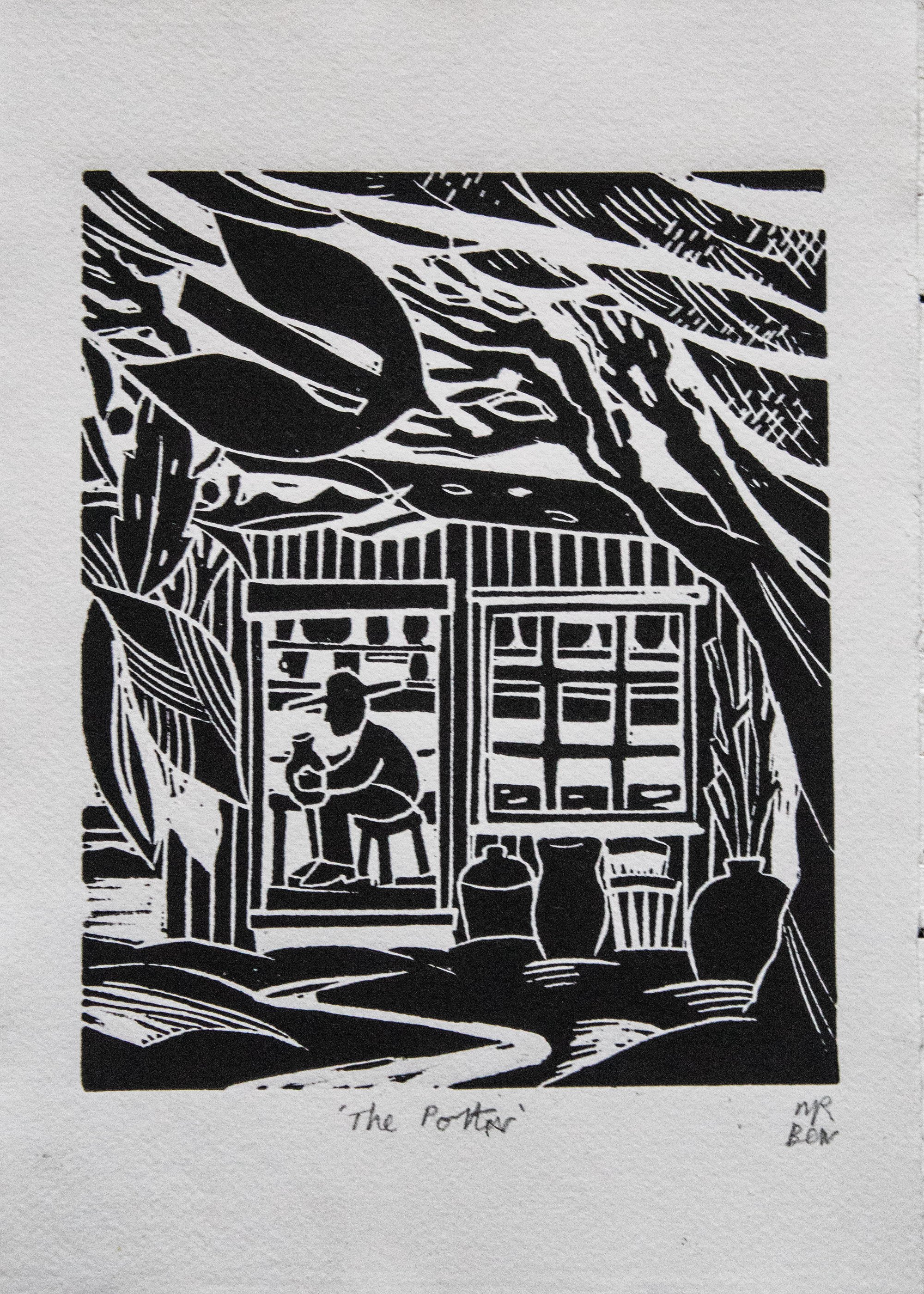 'The Potter' Lino Print
